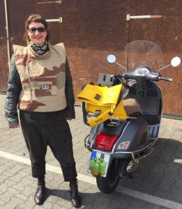 Erst seit 2020 fahre ich Vespa. Meine Erste war eine „teufelsrote“ 50er. Bald danach eine knallgelbe 300 GTS, die einen Mordsspaß macht und auch reizt, länger zu fahren.