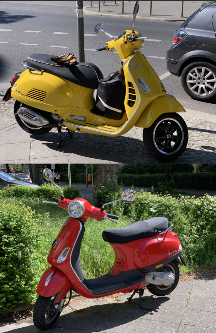 Erst seit 2020 fahre ich Vespa. Meine Erste war eine „teufelsrote“ 50er. Bald danach eine knallgelbe 300 GTS, die einen Mordsspaß macht und auch reizt, länger zu fahren.