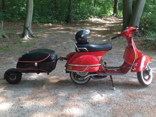 Zu meiner Vespa, gehört noch ein PAV 40 Einradanhänger dazu, der natürlich in den Fahrzeugschein mit 50 kg Anhängelast eingetragen ist.